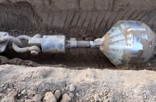 據(jù)技術(shù)人員介紹,此次定向穿越施工分為兩個階段進(jìn)行。第一階段是導(dǎo)向擴(kuò)孔階段,首先按照設(shè)計曲線準(zhǔn)確地在出土點和入土點之間鉆出一個導(dǎo)向孔,然后利用400mm-1460mm的7個規(guī)格的鉆頭依次擴(kuò)孔,最終將導(dǎo)向孔擴(kuò)大至直徑長度1460mm。第二階段是回拖布管階段,將DN1020鋼管沿著擴(kuò)大后的導(dǎo)向孔進(jìn)行回拖,最終將鋼管全部拖入導(dǎo)向孔內(nèi),完成管線穿越。