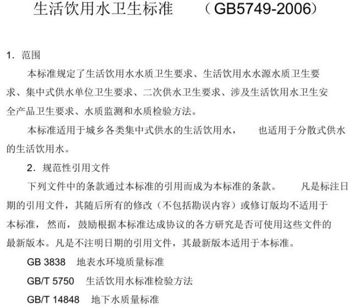 生活飲用水衛(wèi)生標準(GB5749-2006)