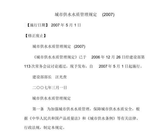 城市供水水質(zhì)管理規(guī)定(2007)
