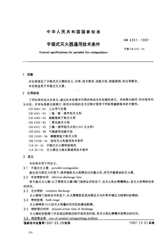 GB4351-1997 手提式滅火器通用技術(shù)條件