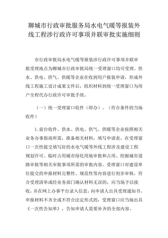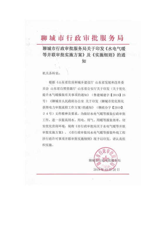 市行政審批局關(guān)于水電氣暖并聯(lián)審批實(shí)施方案及實(shí)施細(xì)則