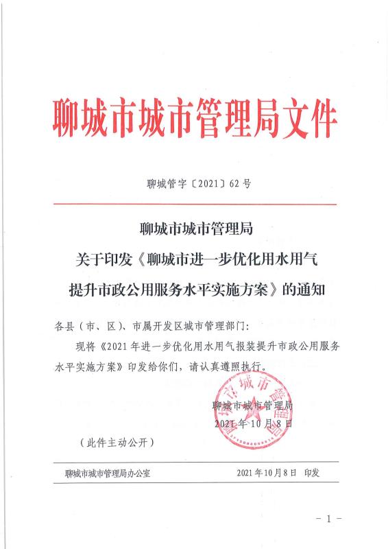 聊城市城市管理局關(guān)于印發(fā)《聊城市進(jìn)一步優(yōu)化用水用氣提升市政公用服務(wù)水平實施方案》的通知