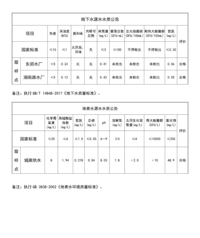2022年1月水質(zhì)公告