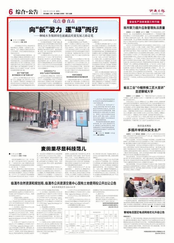綠色低碳是高質(zhì)量發(fā)展的底色。近年來,聊城水務(wù)集團(tuán)認(rèn)真貫徹落實(shí)習(xí)近平生態(tài)文明思想,搶抓黃河流域生態(tài)保護(hù)和高質(zhì)量發(fā)展、山東省創(chuàng)建綠色低碳高質(zhì)量發(fā)展先行區(qū)重大發(fā)展機(jī)遇,以綠色低碳發(fā)展為導(dǎo)向,重點(diǎn)打造綠色項(xiàng)目、拓展多產(chǎn)融合,將節(jié)能降碳的“含綠量”不斷轉(zhuǎn)化為企業(yè)發(fā)展的“含金量”,走好綠色低碳高質(zhì)量發(fā)展之路。
