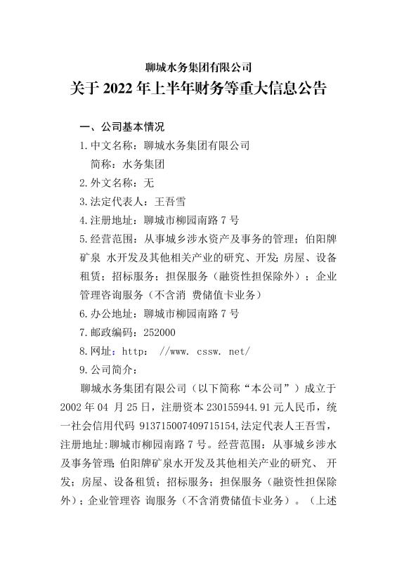 下一篇:聊城水務(wù)集團(tuán)有限公司關(guān)于2022年度財(cái)務(wù)等重大信息公告