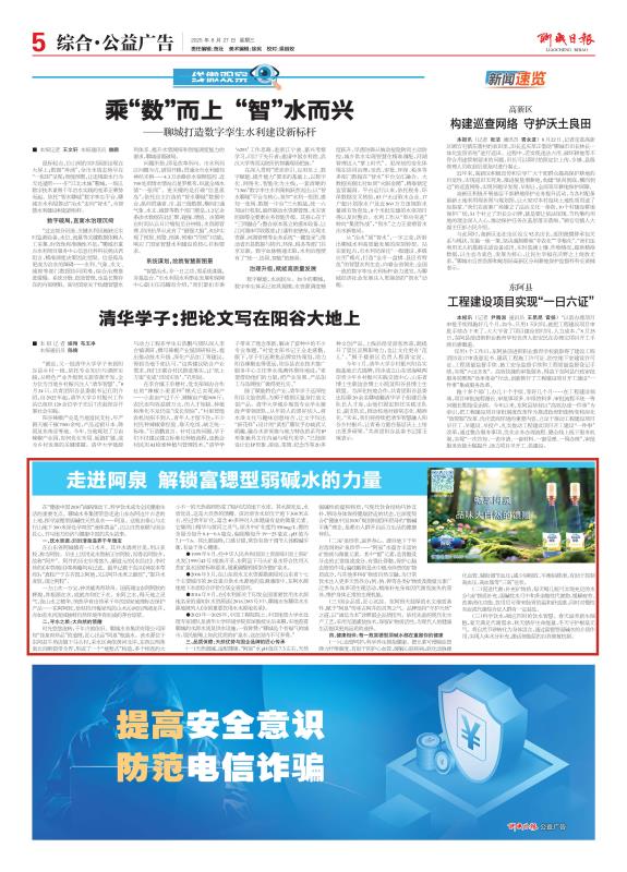 ●2023年—2025年,中國(guó)工程院院士、中國(guó)地質(zhì)大學(xué)水處理專家團(tuán)隊(duì)及清華大學(xué)環(huán)境學(xué)院資深教授先后來聊,實(shí)地查看聊城的水源水質(zhì)及供水設(shè)施,一致稱贊:“聊城是個(gè)有福氣的城市,居民能喝上如此優(yōu)質(zhì)的礦泉水,這在國(guó)內(nèi)不可多得?!?