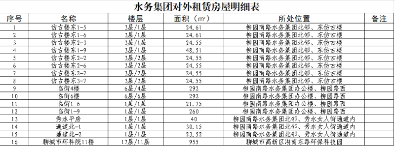 水務(wù)集團對外租賃房屋明細表
