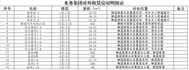 水務(wù)集團(tuán)對(duì)外租賃房屋明細(xì)表